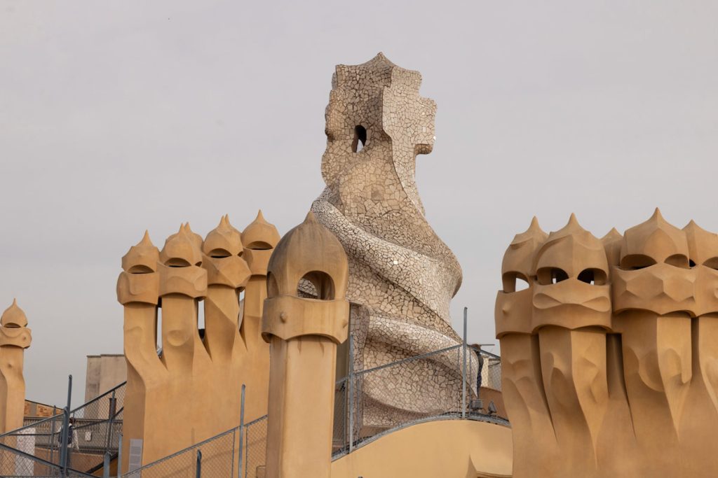 Una estança àmplia i refinada en alçada, amb vistes a les xemeneies de la Pedrera, banyera exempta i dutxa independent