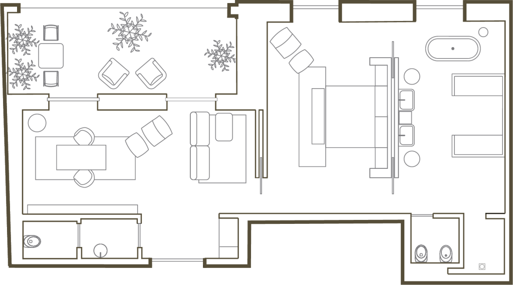 Majestuosa suite amb encant, de 120 m², amb terrassa privada de 20 m² per a una estada privilegiada. Situada a la planta superior i distribuïda en 5 estances, compta amb grans finestrals per gaudir de la lluminositat mediterrània i d’una perspectiva privilegiada sobre la Sagrada Família i el centre de la ciutat.